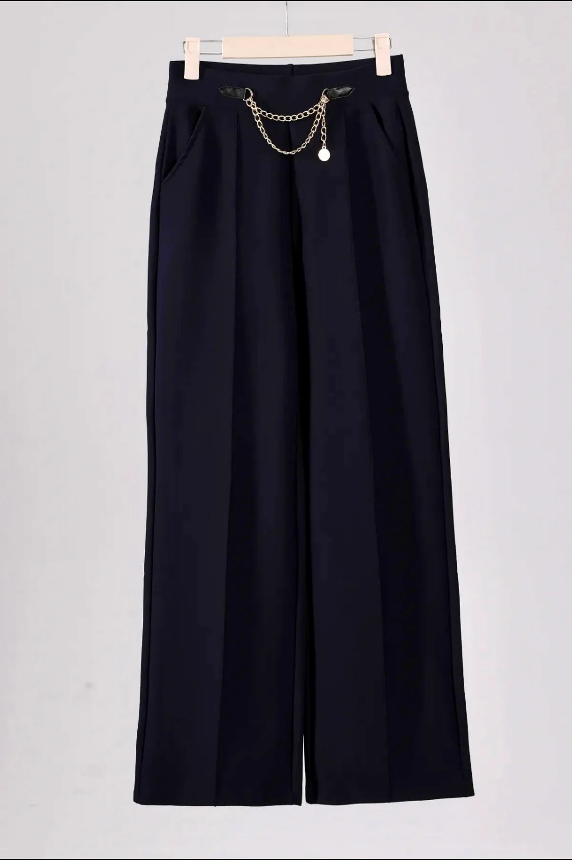 Our new soft & stretchy Tina Trousers with Elasticated waist band with gold chain detail , side pockets